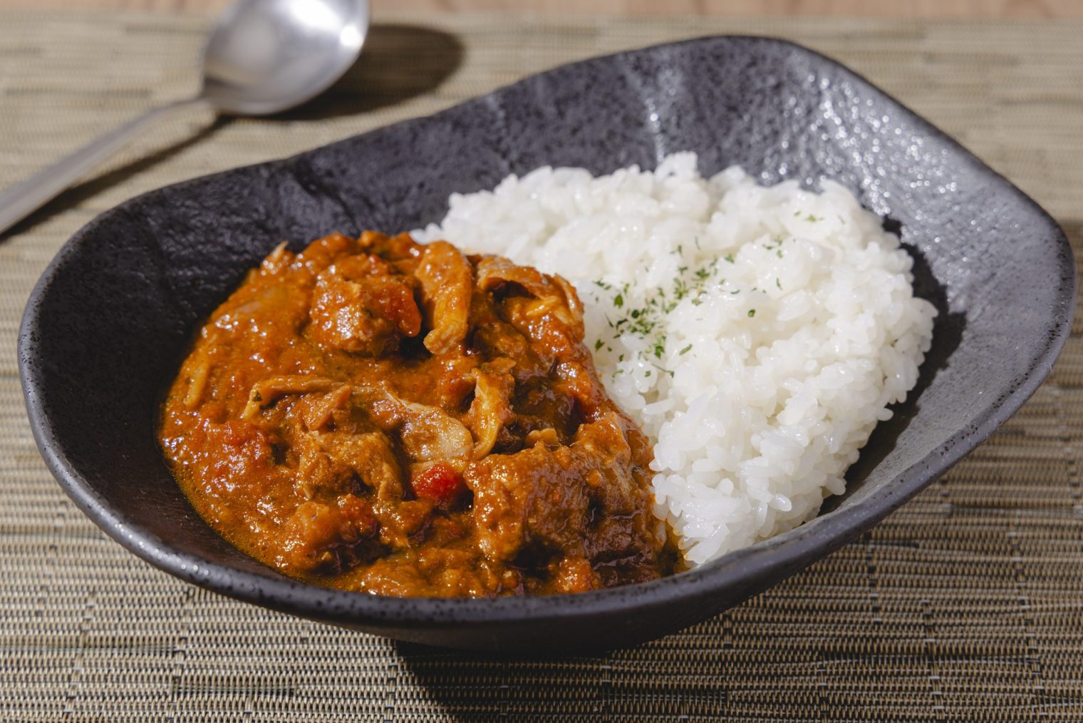 ゴロゴロとカットした豚トロと舞茸をたっぷり入れ、料理長オリジナルブレンドのスパイスを使った、本格的なカレーです。