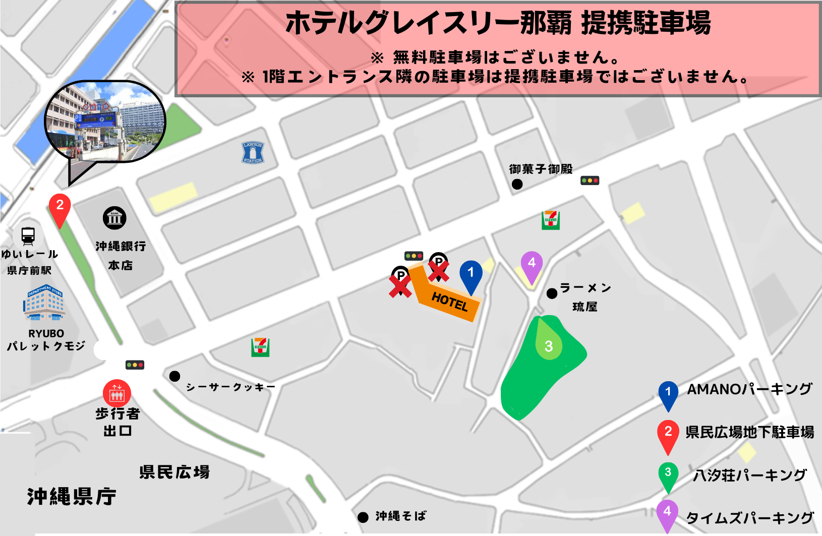 - ゆいレール県庁前駅 徒歩約5分 / 那覇空港 車で約15分
