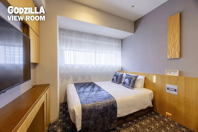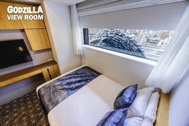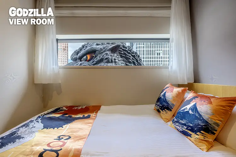 窓の外にはゴジラが!テラスに設置されたゴジラヘッドを最もリアルに体感できるお部屋です。